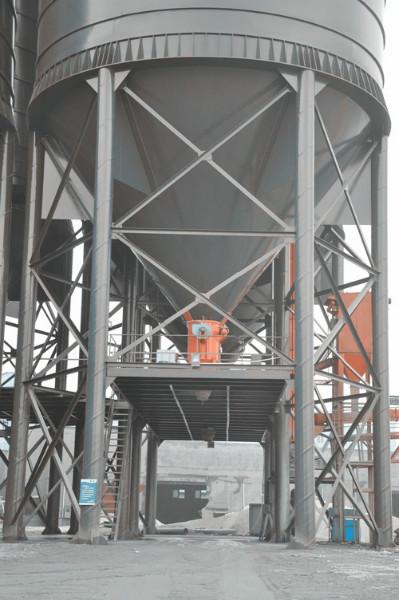 高架鋼板倉(cāng)(鋼板庫(kù))的倉(cāng)底以下設(shè)計(jì)相對(duì)較為復(fù)雜,這一部分主要包含的構(gòu)件有:倉(cāng)壁、筒壁、斗壁、加筋肋、環(huán)梁、綴板、斗口、支撐柱。 1 鋼板倉(cāng)(鋼板庫(kù))圓錐漏斗倉(cāng)底由環(huán)梁和斗壁組成,圓錐漏斗倉(cāng)底與倉(cāng)壁相交處應(yīng)設(shè)置環(huán)梁。環(huán)梁與倉(cāng)壁及漏斗壁的連接可采用焊接或螺栓連接。當(dāng)環(huán)梁與倉(cāng)壁及漏斗壁的連接可采用焊接連接時(shí)環(huán)梁計(jì)算不可與之相連的倉(cāng)壁及漏斗壁參與工作。 2 斗壁可由經(jīng)向劃分的梯形板塊組成,每塊板在漏斗上口處的長(zhǎng)度宜為1.0m。 3斗口宜設(shè)計(jì)為焊接整體結(jié)構(gòu),其上口直徑不宜大于2.0mm下口尺寸應(yīng)滿足工藝要求。 4鋼板倉(cāng)(鋼板庫(kù))倉(cāng)底在裝配后內(nèi)表面應(yīng)光滑,不得滯留儲(chǔ)糧。 5當(dāng)采用流化倉(cāng)底出物料或選用平底倉(cāng)時(shí),其倉(cāng)底應(yīng)按工藝要求設(shè)計(jì)。 德通鋼板倉(cāng)建議設(shè)計(jì)時(shí)參照GB50884-2013鋼筒倉(cāng)技術(shù)規(guī)范附條文。