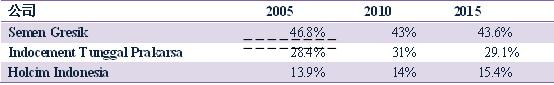 2016年,印尼政府表示將加大力度發(fā)展基礎(chǔ)設(shè)施,預(yù)計(jì)水泥銷量將增長(zhǎng)6.6%至6500萬(wàn)噸左右。此外,2016年印尼國(guó)內(nèi)的經(jīng)濟(jì)增速預(yù)計(jì)會(huì)加快至5.3%,居民購(gòu)買(mǎi)力將增強(qiáng),從而帶動(dòng)房地產(chǎn)開(kāi)發(fā)(特別是印尼央行將繼續(xù)下調(diào)目前較高的利率)。 雖然爪哇島(印尼人口最多的島)依然是水泥消費(fèi)量最大的地區(qū),然而2016年蘇門(mén)答臘島水泥消費(fèi)量預(yù)計(jì)將有大幅上升,這主要得益于蘇門(mén)答臘公路和貝西當(dāng)-民禮鐵路的建設(shè)。 然而,印尼國(guó)內(nèi)前三大水泥生產(chǎn)商--Semen Indonesia、Indocement Tunggal Prakarsa和Holcim Indonesia(合計(jì)占印尼國(guó)內(nèi)85%的市場(chǎng)份額)將不得不面對(duì)新的競(jìng)爭(zhēng)對(duì)手的競(jìng)爭(zhēng)。近幾年,印尼水泥行業(yè)由于具有充滿希望的前景而吸引了新的(國(guó)外)參與者,同時(shí)也讓現(xiàn)有的企業(yè)加緊擴(kuò)張產(chǎn)能,從而使得國(guó)內(nèi)競(jìng)爭(zhēng)將加劇。 印尼水泥協(xié)會(huì)會(huì)長(zhǎng)Santoso表示,2016年將有四家新的水泥廠投產(chǎn),新增水泥產(chǎn)能910萬(wàn)噸。因此,預(yù)計(jì)2016年國(guó)內(nèi)水泥產(chǎn)能(約9200萬(wàn)噸)將遠(yuǎn)超國(guó)內(nèi)水泥需求(約6500萬(wàn)噸)。這意味著市場(chǎng)的競(jìng)爭(zhēng)將更加殘酷,水泥生產(chǎn)商的利潤(rùn)空間將被壓縮。 舉個(gè)例子,泰國(guó)最大的水泥生產(chǎn)商Siam Cement Group (SCG)在蘇卡布米(西爪哇)新建了一個(gè)年產(chǎn)180萬(wàn)噸的水泥廠。它的水泥品牌是SCG,更多的供應(yīng)意味著水泥價(jià)格將有下行的壓力(2015年初,價(jià)格已經(jīng)開(kāi)始震蕩下跌,印尼總統(tǒng)佐科·維多多下行所有國(guó)有水泥生產(chǎn)商將下個(gè)下調(diào)到3000印尼盧比/袋以支持基建和房地產(chǎn)行業(yè)發(fā)展,因而民營(yíng)生產(chǎn)商將不得不下調(diào)價(jià)格以保持競(jìng)爭(zhēng)優(yōu)勢(shì)) 此外,2016年1月,印尼加里曼丹島的水泥銷售額同比下滑30%,這不僅僅是由于這個(gè)島資源豐富、購(gòu)買(mǎi)力弱,還由于中國(guó)水泥巨頭安徽海螺(228.21元/噸,-0.02%)對(duì)本地大幅優(yōu)惠的銷售政策。2014年底,海螺投資2.02億美元的水泥廠在南加里曼丹投產(chǎn),這是該公司在印尼的唯一工廠,水泥年產(chǎn)能達(dá)150萬(wàn)噸。 雖然安徽海螺在印尼靠近東部一帶沒(méi)有水泥廠,然而其仍然能夠通過(guò)位于中國(guó)的工廠進(jìn)口水泥在這些地區(qū)進(jìn)行銷售。對(duì)安徽海螺來(lái)說(shuō),從中國(guó)進(jìn)口水泥的運(yùn)輸成本僅僅為5美元/噸,而印尼國(guó)內(nèi)水泥價(jià)格高于中國(guó),此外中國(guó)國(guó)內(nèi)的水泥成本在54美元,而印尼則高達(dá)97美元。 由于新進(jìn)入者以及其大幅的優(yōu)惠政策,印尼傳統(tǒng)三大水泥生產(chǎn)商的份額在2016年1月同比已下滑0.3個(gè)百分點(diǎn)。不過(guò),相對(duì)較小的減少份額也反映了現(xiàn)有三大水泥生產(chǎn)商牢固的市場(chǎng)地位。 表1:印度三大水泥生產(chǎn)商市場(chǎng)份額