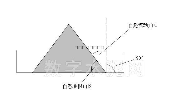 3、細(xì)度越高,粉體流動性變化幅度越大。 5、任何粉體在靜態(tài)沉積條件下,均存在其含氣向上方自然逸析向固態(tài)轉(zhuǎn)化的趨勢,從流態(tài)轉(zhuǎn)為固態(tài)的速率與粉體比重和料壓成正比;達(dá)到飽和固態(tài)的粉體已不可析氣壓縮,每種粉體的自然飽和固態(tài)料壓力(料位高度)不同。 6、當(dāng)空氣濕度大并滲入粉體時,其流動性隨水份含量高而降低;反之,空氣干燥則增加。 7、動態(tài)收縮越快,粉料所受收縮壓越大,氣體擠出效應(yīng)越快,流動性轉(zhuǎn)變?yōu)楣绦栽娇?,尤其?a href="http://www.zhuchengliang11.com.cn/">鋼板倉倉底出口附近,大流量卸放必然引發(fā)的快速收縮度而容易形成拱圈阻塞。距鋼板庫庫底出口最短垂直路徑的中心通道因收縮小,其流動性最高。 8、鋼板庫庫底邊壁存在料重承壓固化效應(yīng),位置越低料壓越高,固化性越大;而且邊壁還存在摩擦阻流效應(yīng),一般在鋼板庫庫底錐及垂直壁夾角的自然堆積角區(qū)易形成飽和固態(tài)料。 9、粉體下落往往以動態(tài)拱垮式自然振顫方式進(jìn)行,每層料拱將上部料壓力統(tǒng)一導(dǎo)向外庫壁支撐,待其下方落空失去支撐平衡而垮落再重新成拱,如此周而復(fù)始,流動性越低其拱垮幅度越大,下落振顫周期與幅度越大。 三、粉體性的量化標(biāo)準(zhǔn)與定義 不難發(fā)現(xiàn),粉體的自然堆積角與其流動性上呈反比,從庫內(nèi)錐口卸放時體現(xiàn)為導(dǎo)流性的等幅變化,因此可定義其自然流動角為自然堆積角的余角: