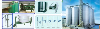 利浦式鋼板倉,又稱螺旋式鋼板倉,顧名思義,倉體是有卷倉機(jī)組螺旋上升制作而成。目前國內(nèi)利浦筒倉是用螺旋卷倉機(jī)組咬合卷板制作而成,卷倉機(jī)組包括:松卷機(jī)、卷邊機(jī)、成型機(jī)、三角扒桿、電器控制。卷倉機(jī)組主要有SM30和SM40型兩種規(guī)格。SM30適合筒倉直徑范圍:3~8米,SM40適合筒倉直徑范圍6~18米。螺旋卷邊鋼板倉該類倉是用寬的卷板由開卷機(jī)、成型機(jī)、彎折機(jī)、承載支架等設(shè)備多工位一次合成。施工時(shí), 由開卷機(jī)將加工材料開卷并送人成型機(jī), 在成型機(jī)上將加工材料初步加工成型, 同時(shí)把材料彎成筒倉直徑所需求的弧度, 彎折機(jī)再對材料彎折、咬口、扎制在一起如下圖所示, 形成一條一寬的螺旋咬口。因倉體在卷制過程中外壁制成一條五倍于材料厚度的咬口螺旋凸條, 大大增強(qiáng)了倉體的抗載能力和整體的強(qiáng)度與剛度。如上所述, 卷邊倉是利用專用設(shè)備進(jìn)行彎曲、成型、咬口、彎折而制成, 所以密封性能好, 可滿足糧食殺蟲、熏蒸或儲(chǔ)存液體原料的特殊要求。卷邊倉是現(xiàn)場制作, 所以對施工現(xiàn)場的條件和技術(shù)要求較高。螺旋卷邊倉外型美觀, 內(nèi)壁光滑, 密封性能好, 整體強(qiáng)度與剛度高, 適合于大、中、小各類倉型。